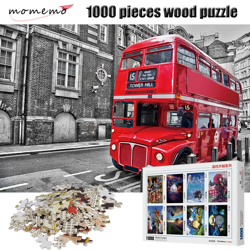 Best Quality MOMEMO London Bus Wooden Jigsaw Puzzle 1000 Pieces Landscape Puzzle Game Adult Entertainment Assemb