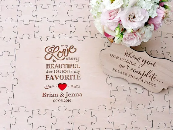 REVIEW TOP SELLER personalized initials date rustic puzzle wedding guest books Alternative Wooden guestbooks Receptio