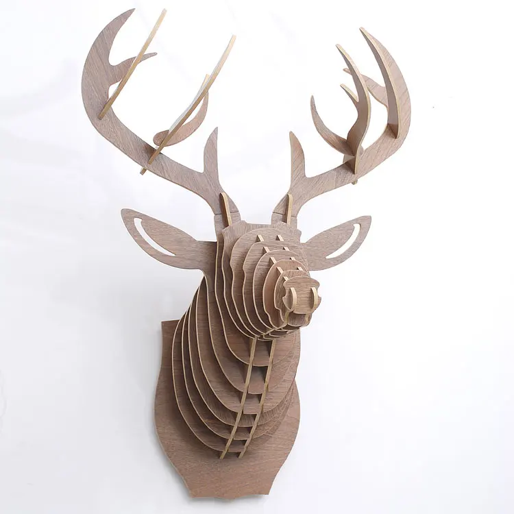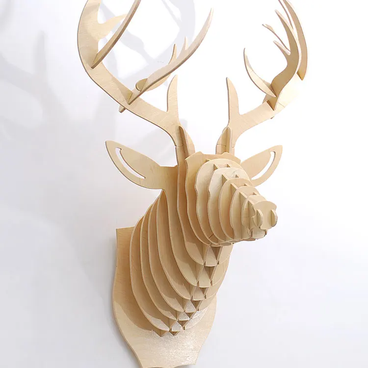 J&E high-end 25.1" height deer head wall decor wood craft self-build puzzle