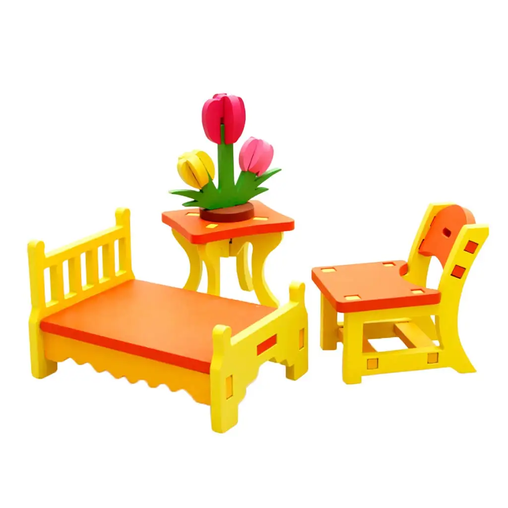 Hot Sale Wooden Dollhouse Furniture 3D Puzzle Miniature Doll House Accessories Educational Toys Birthday Gif